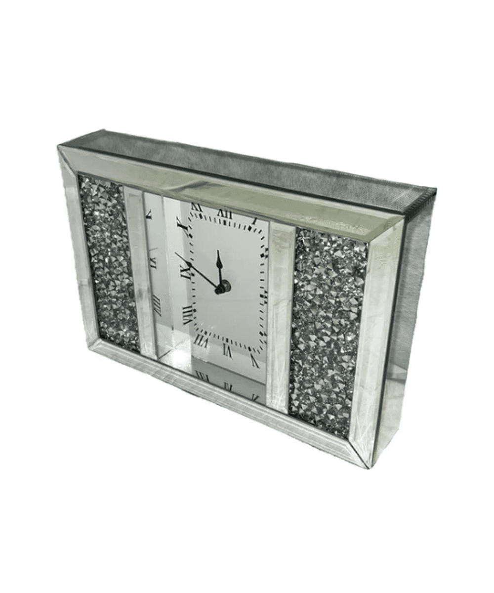 A refined combination of timekeeping and design, this mirrored table clock adds modern sophistication to any surface.